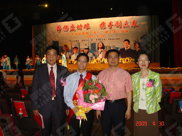 4月28日上午,廣州市委大禮堂張燈結(jié)彩、鑼鼓喧天,一派喜氣洋洋。廣州市委、市政府慶祝“五一”國際勞動(dòng)節(jié)暨勞動(dòng)模范和先進(jìn)集體表彰大會(huì)在這里舉行。廣州市國研機(jī)械設(shè)備制造有限公司市場部經(jīng)理劉啟剛同志作為天河區(qū)6萬多家民營企業(yè)唯一當(dāng)選的廣州市勞動(dòng)模范出席了表彰大會(huì)。廣東省委常委廣州市委書記朱小丹、市長張廣寧等省市領(lǐng)導(dǎo)親自為劉啟剛等勞動(dòng)模范頒發(fā)廣州市勞動(dòng)模范獎(jiǎng)狀和榮譽(yù)證書并合影留念。